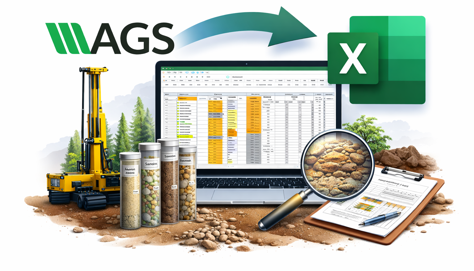 Try our free to use online AGS-to-Excel convertor ! WIth just a click of a button convert you .ags files to excel, making it effortless to summarize and analyze your soil investigation data.